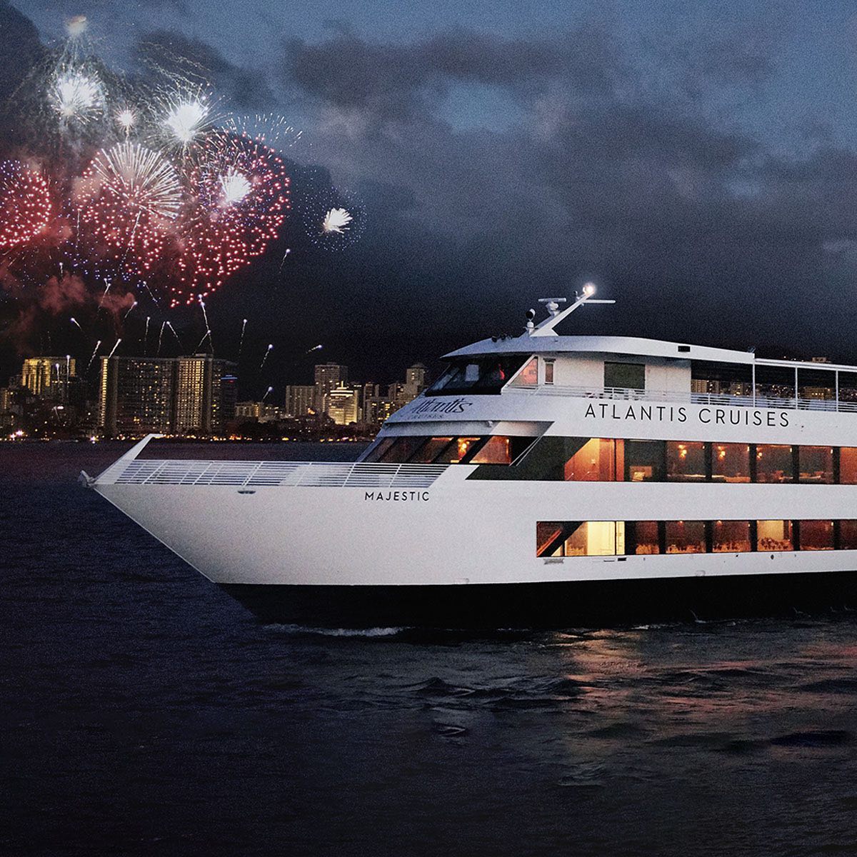Majestic by Atlantis Cruises also offers an unforgettable evening of fireworks and cocktails on the sea. This experience is a great way to unwind and enjoy the stunning views of Waikiki’s coastline. Guests can grab a hand-crafted cocktail from the full-service bar and cocktail lounge on the sea while soaking in the breathtaking views from the air-conditioned lounge. The top-level deck offers 360-degree, open-air views of Waikiki’s famous coastline, and guests can enjoy the vibrant display of fireworks from a whole new perspective as the colorful lights reflect off the sea.